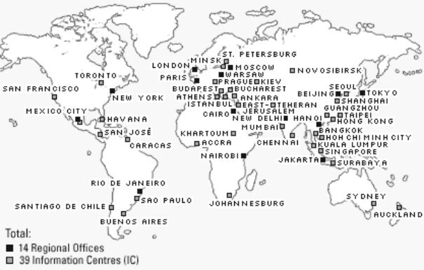 The DAAD also has an extensive presence abroad. Its Regional Offices around the world maintain contacts with partners and create efficient communications channels, perform programme management responsibilities and provide support at local level: Beijing, Cairo, Hanoi, Jakarta, London, Mexico City, Moscow, Nairobi, New Delhi, New York, Paris, Rio de Janeiro, Tokyo, and Warsaw.