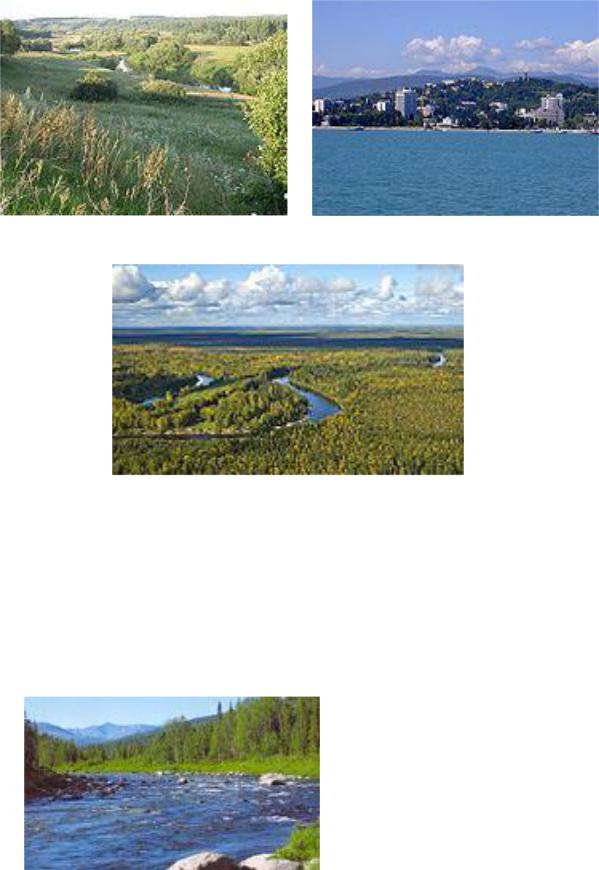 The Russian Federation with its topography, its climates, vegetation, and soils span vast distances. From north to south the East European Plain is clad sequentially in tundra, coniferous forest (taiga), mixed and broadleaf forests, grassland (steppe), and semi-desert (fringing the Caspian Sea) as the changes in vegetation reflect the changes in climate.