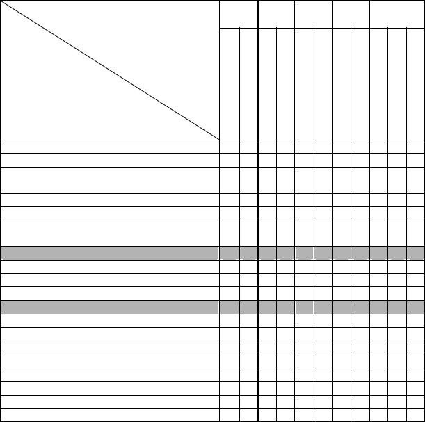 – дисперсия. Знаком «+» показано наличие признака у критерия. Названия глобальных критериев выделены прописными буквами. Строки применяемых в настоящей монографии частных критериев выделены затемнением.