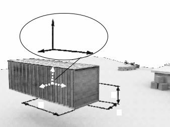 практике расчетных случаев, построение полидистантной поверхности вокруг препятствий позволит учесть тот факт, что размер lgz для рассматриваемой на рис. 3.8 формы груза намного меньше lgx. Кроме того, возможное раскачивание груза вызывает его смещения в основном в горизонтальной плоскости и лишь в незначительной степени – в вертикальном направлении вверх. Следовательно, удаленность полидистантной поверхности вертикально вверх от поверхности препятствий должна быть меньше, чем в горизонтальном направлении.