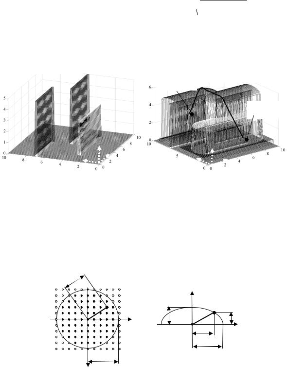 Рабочая область с препятствиями (рис. 3.9, а) задана в виде двухмерного массива чисел – высот точек реальной поверхности YПР(i,k).