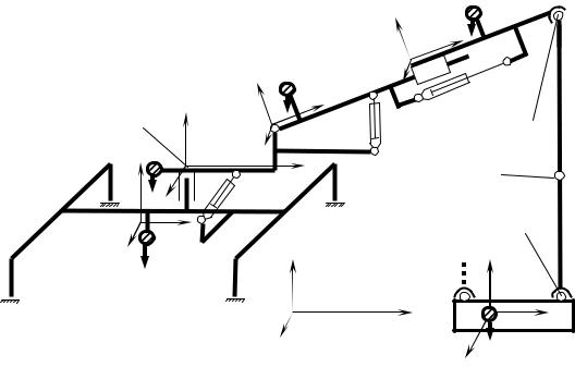 Для определения обобщенных координат крана необходимо сначала перейти от обобщенных координат груза к координатам характерной точки груза в инерциальной системе (точка 1 закрепления груза грузозахватным устройством на рис. 4.2).