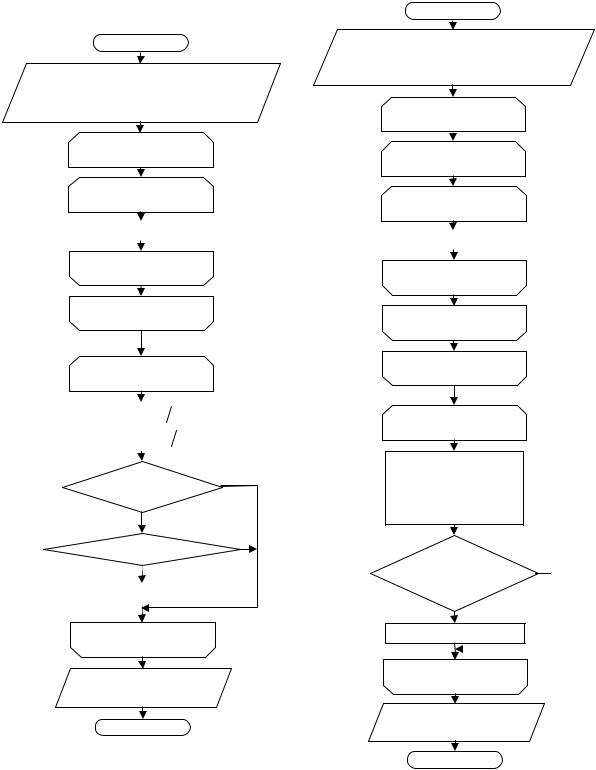 В блок-схемах предложенных алгоритмов использованы следующие условные обозначения: Ms – матрица результатов лазерного сканирования (координат облака точек) размером [iскан×3]; iскан – общее число точек облака отдельного сканирования; YПР (i, k) – отдельный элемент матрицы поля высот препятствий [YПР] с индексами i, k, задающими положение точки поля по двум горизонтальным осям (X0, Z0 соответственно) неподвижной системы координат O0X0Y0Z0 с шагом l; Vox(i, j, k) – отдельный элемент массива воксельной модели пространства с индексами i, j, k, задающими положение точек пространства по осям X0, Y0, Z0 соответственно неподвижной системы координат O0X0Y0Z0 с шагом l; ymin – определенное начальное значение элементов матрицы поля высот препятствий [YПР].