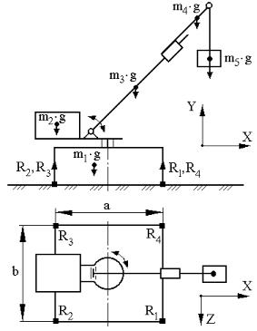 где R1, R2, R3, R4 – нормальные реакции на опорных элементах ГПК