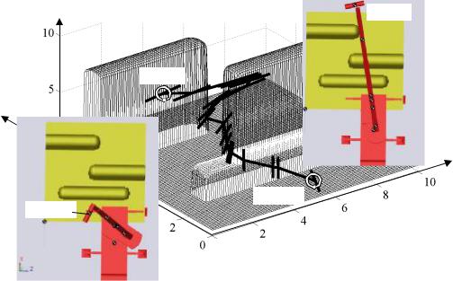 тиве использован как составная часть методики более высокого иерархического уровня для решения задач синтеза оптимальных конструктивных параметров ГПК. Для этого необходимо при помощи многократного решения задачи оптимизации технологических параметров для различных значений варьируемых конструктивных параметров и при различной конфигурации препятствий в рабочей области осуществить подбор оптимальных значений требуемых конструктивных параметров.