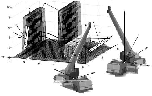 В локальных системах координат стрелы O3Х3Y3Z3 и телескопического звена O4Х4Y4Z4 отдельного крана заданы координаты множеств