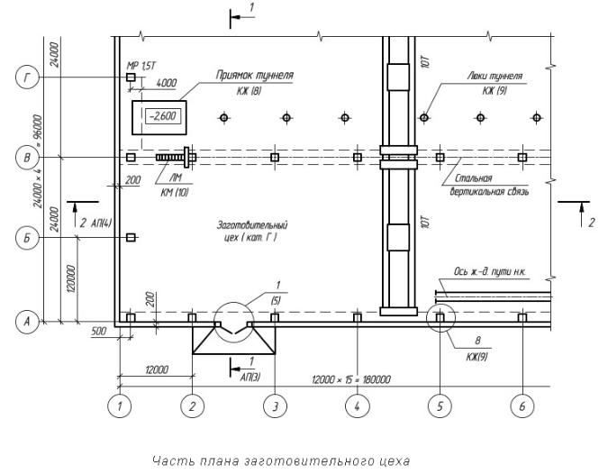 7. Как обозначаются мостовые краны на планах промышленных зданий? 8. Как чертятся фрагменты планов промышленных зданий?
