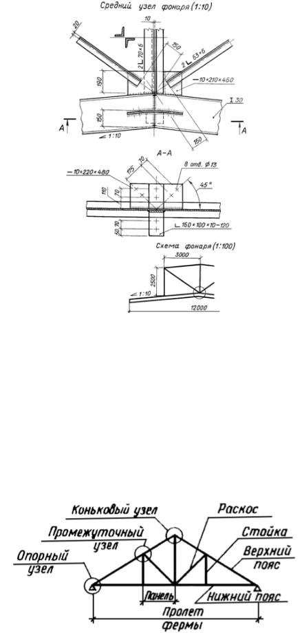 Стойки и раскосы связываются между собой и с верхним и нижним поясами с помощью металлического листа – фасонки. Фермы, перекрывающие
