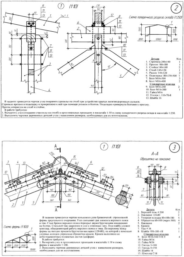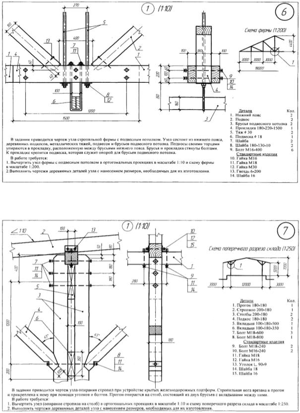 1.Цель – освоить виды металлодеревянных ферм, их конструктивные решения, методику черчения их узлов.