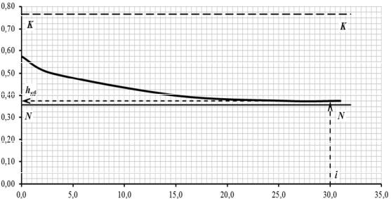 Нормальную глуб ну находим, используя график K = f(h), построен-