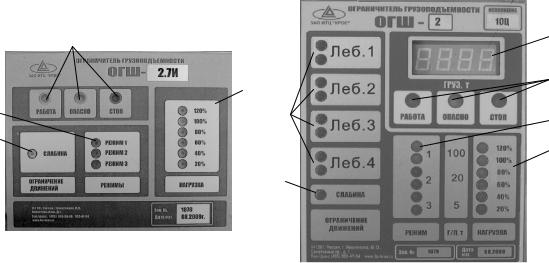 К индикаторам нагрузки относятся цифровая индикация (ОГШ-2.10Ц) и светодиодные индикаторы процента нагрузки. Цифровой индикатор при работе крана показывает суммарную нагрузку на