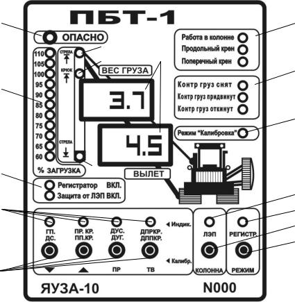 • узел органов управления (кнопки) для выбора режима работы (при различной конфигурации оборудования кранатрубоукладчика), выбора индицируемых параметров и обеспечения настройки (калибровки) прибора на кране-трубоукладчике;