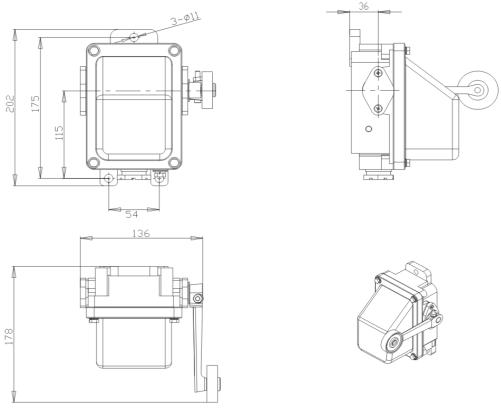 Рис. 2.6. Габаритные размеры концевого выключателя КУ-701 25