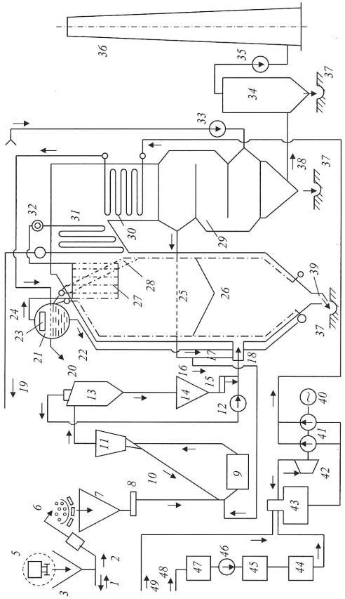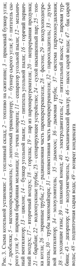 Привозимое топливо для сжигания с помощью вагоноопрокидывателя 5 поступает в приемный бункер угля 3, откуда транспортными устройствами направляется на топливный склад 1 или для сжигания.