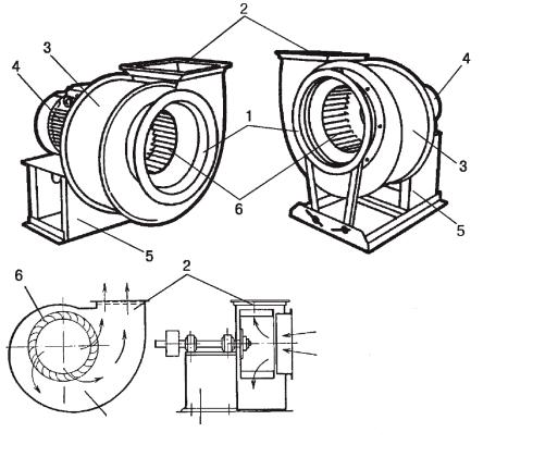 Рад альный вент лятор конструктивно (рис. 1.1) представляет собой расположенное в спиральном корпусе 3 рабочее колесо 6, при