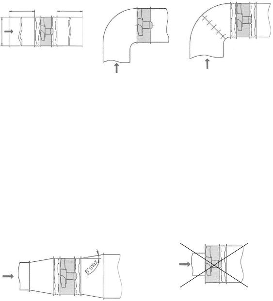 Рис. 2.24. Рекомендации к монтажу переходников, примыкающих к вентилятору