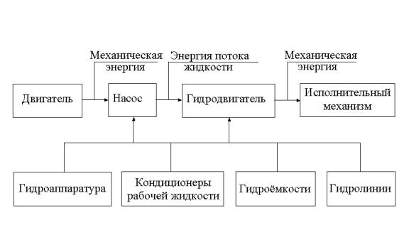 Рис.1.1. Функциональная схема объемного гидропривода
