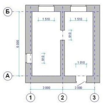По оси Б – два оконных проема –1510 мм (самонесущая стена толщиной 510 мм).