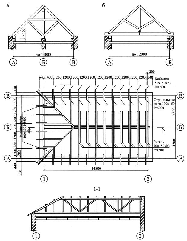 Рис. 2.19. Стропильные конструкции малоэтажных зданий: