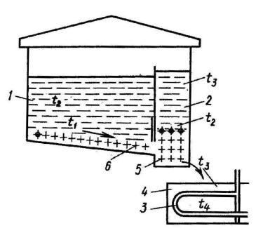 При нагреве теплоноситель направляется сначала в змеевики системы обогрева дополнительного отсека, а затем в змеевики основного отсека (см. рис. 3.3).