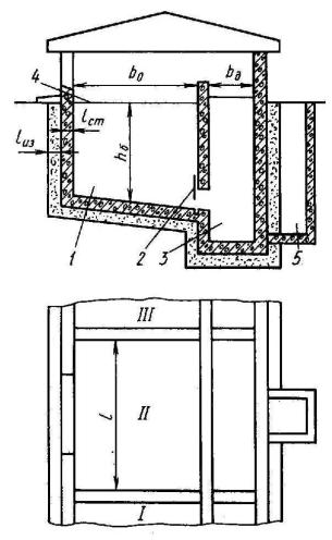 где Sб.о, Sд.о – суммарные площади контакта с грунтом боковых стенок и днища основного отсека, м2; Sб.д, Sд.д – суммарные площади контакта с грунтом боковых стенок и днища дополнительного отсека, м2; h2 – коэффициент теплопередачи из основного отсека в почву, кВт/(м2 °С); h3 – коэффициент теплопередачи из дополнительного отсека в почву, кВт/(м2 °С).