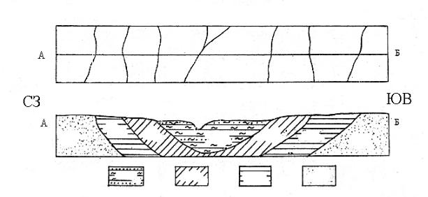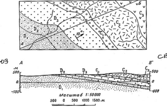Рис. 11. ПримербАпостроения схематического разреза по геологической карте для |