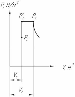 Рис. 5.6. Верхняя часть индикаторной диаграммы дизеля: Vc – объем камеры сгорания; Vz – объем предварительного расширения