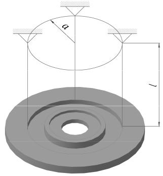Рис. 7.1. Схема крепления маховика на трех нитях