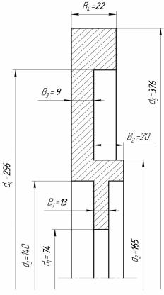 где d4 – внутренний диаметр обода, 0,256 м; d5 – внешний диаметр обода, 0,376 м; B4 – ширина наружного обода, 0,022 м; ρ – плотность стали, 7800 кг/м3.