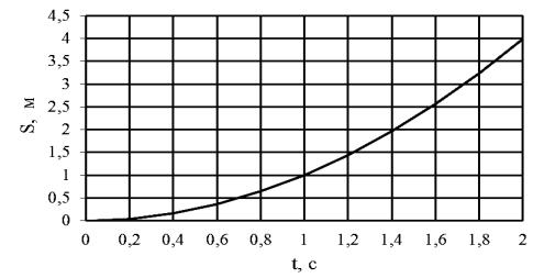 Решение. Построим график зависимости пути от времени. Пусть вертикальная ось соответствует перемещению S, а горизонтальная – времени t (рис. 1.5). По условию задачи t 0;2 . График представляет собой ветвь параболы на участке изменения t от 0 до 2.