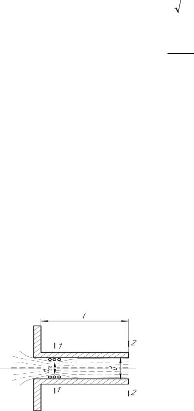 ширяется и заполняет все поперечное сечение. В выходном сечении 2–2 коэффициент сжатия струи =1. Коэффициент расхода будет равен коэффициенту скорости = 0,82.