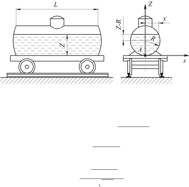 Установим эту зависимость. Вертикальное поперечное сечение цистерны представляет собой окружность с центром, сдвинутым относительно начала координат по оси Az вверх на величину z = R. Ее уравнение: x2 z R 2 R2. Отсюда x