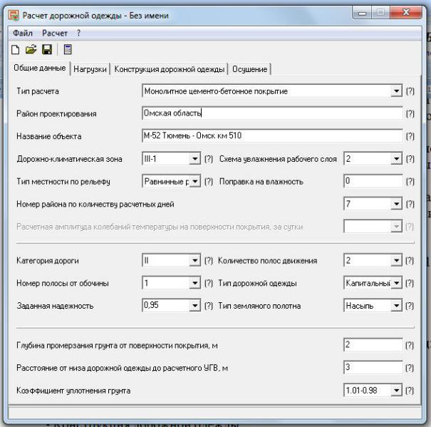 На вкладке Общие данные расположены поля ввода аналогичные, как и при проектировании нежесткой дорожной одежды. Запол-