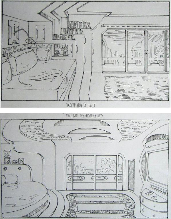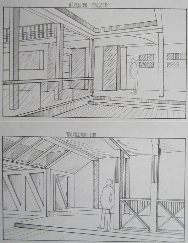Рис. 38. Моделирование пространства через изменение образного ключа. Автор Денисевич Ю., рук. ст. преп. Титова Е.А., СибАДИ