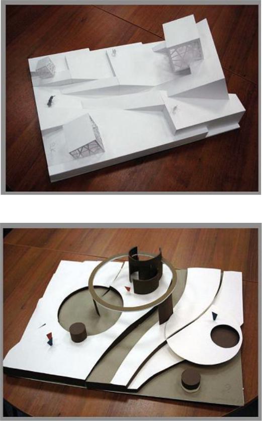 Рис. 2. Композиционная организация открытого пространства и выявление доминирующей объемной формы. Автор Балыш П.С., рук. проф. Метленков Н.Ф., доц. Полищук С.А. доц. Тарасова О.Ю., МархИ
