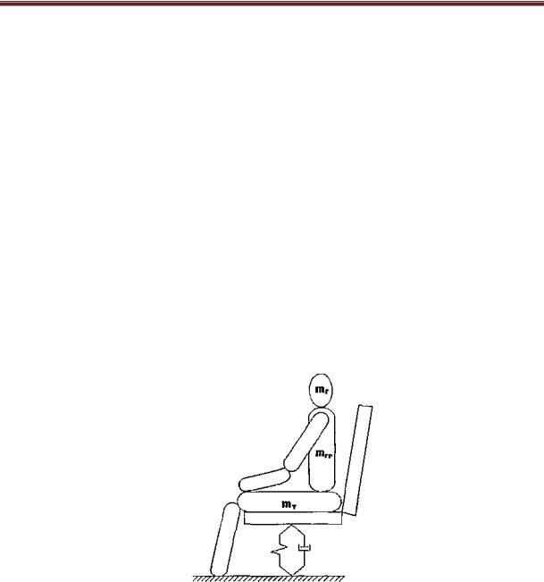 На основе данных различных исследований была построена одномассовая модель тела человека (рис. 1) [7]. В этой модели тело человека представлено в виде сосредоточенной массы, помещенной на упругом основании. Жесткость основания и затухания колебаний в такой системе определяется жесткостью сиденья и затухания в нем. Масса частей тела, приходящихся на сиденье, принимается равной 55-57 кг, при полной массе человека 75 кг. Такая модель принимается в большинстве исследований [7, 8].