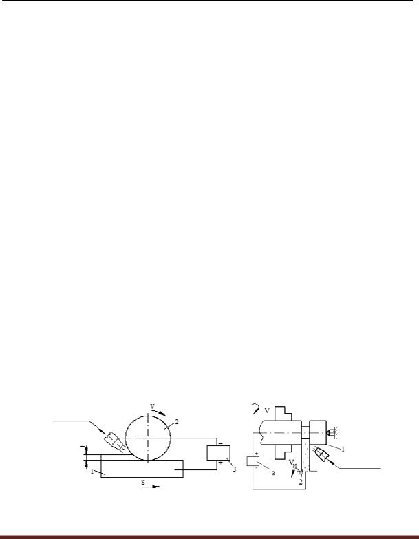 Общая схема процесса электроалмазного шлифования отличается от схемы обычного шлифования наличием в ТС источника технологического тока. Такая схема приведена на рисунке 1.