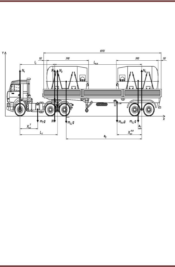 Рис. 3. Расчетная схема автопоезда с цистернами ЦТК-5/0,25