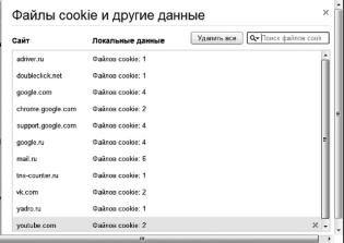 Рис. 1.58. Окно просмотра «Файлы cookie и другие данные»
