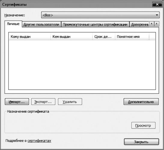 Рис. 1.61. Управление сертификатами