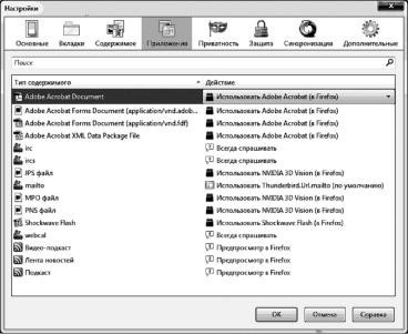 Здесь можно настроить, какие действия будут совершаться с содержимым различного типа.