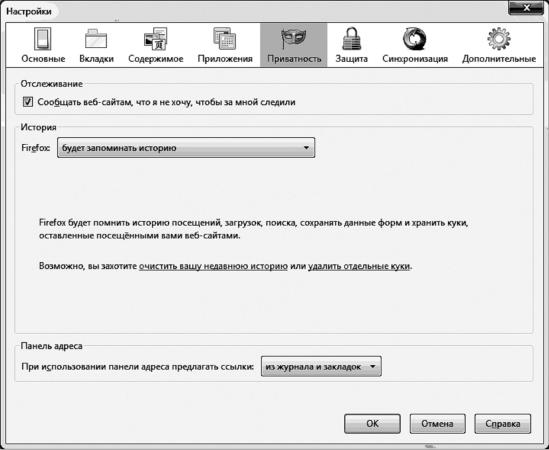 Рис. 1.67. Вкладка «Приватность»