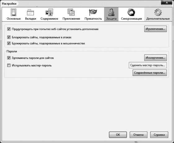 «Блокировать сайты, подозреваемые в мошенничестве». Установить этот флажок, если необходимо, чтобы Firefox производил про-