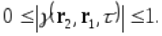 - комплексний ступень когерентності, завжди має задовольняти нерівності: