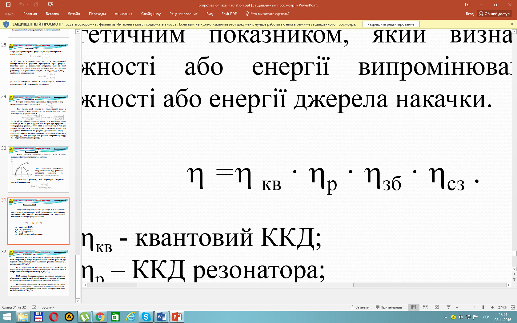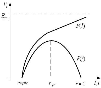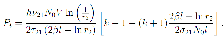 Для лазера, який працює по трьохрівневій схемі в безперервному режимі, потужність що випромінюється скрізь напівпрозоре дзеркало при r1 = 1