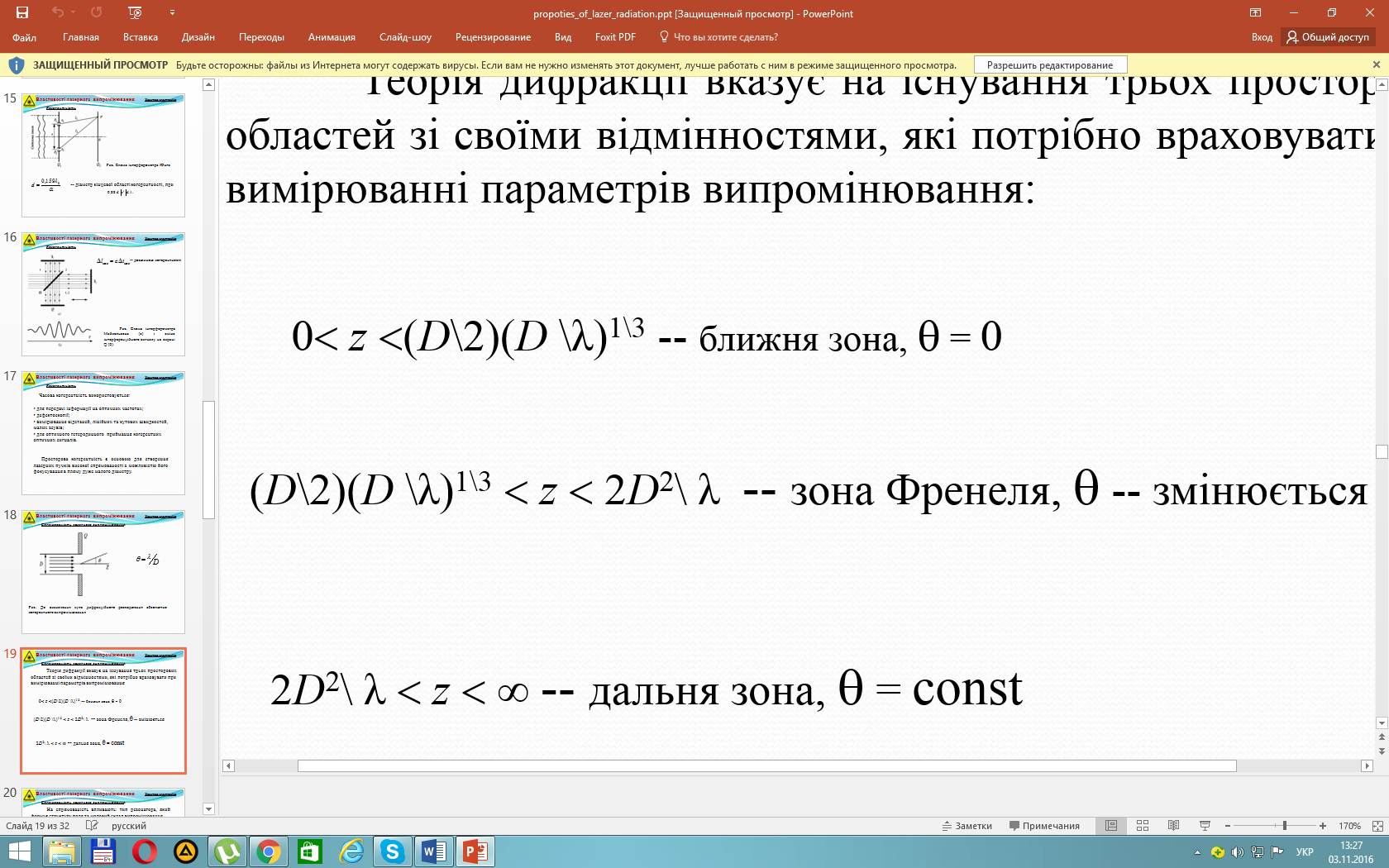 Теорія дифракції вказує на існування трьох просторових областей зі своїми відмінностями, які потрібно враховувати при вимірюванні параметрів випромінювання: