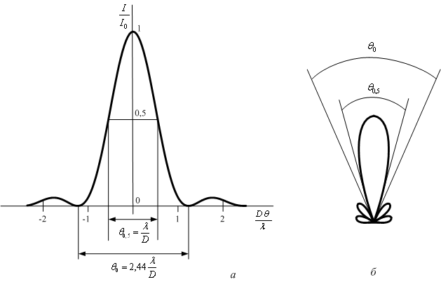 Гауссове розподілення поля дає майже у двічі менше розходження пучка ніж рівномірне. Причиною цього є більш швидке спадання інтенсивності поля на краях пучка і , відповідно, менші дифракційні ефекти.