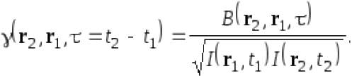 Якщо ввести відносно світлового пучка нормовану кореляційну функцію, то у випадку стаціонарності поля світлового пучка можна записати як:
