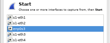 В окне Wireshark выберите enp0s3 из списка интерфейсов и нажмите кнопку Start (Пуск).