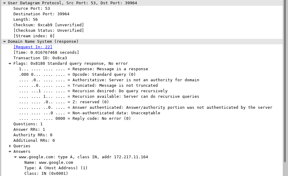 В этом шаге вам нужно изучить пакет DNS-ответа и убедиться в том, что он также использует протокол UDP.